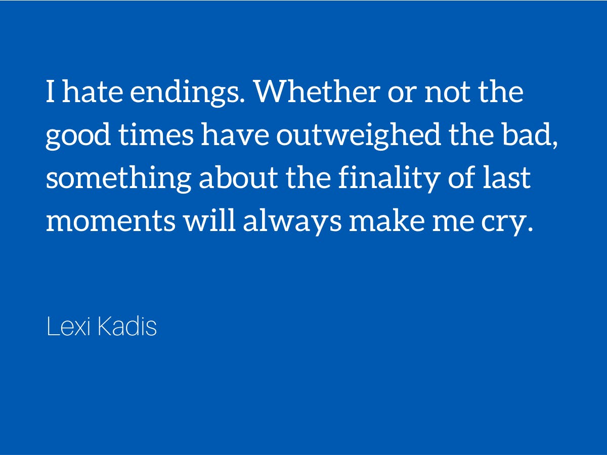 I hate endings. Whether or not the good times have outweighed the bad, something about the finality of last moments will always make me cry.